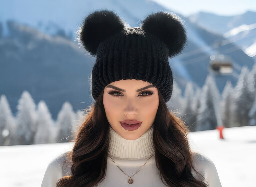 Chunky Knit Beanie With Double Pom Hat