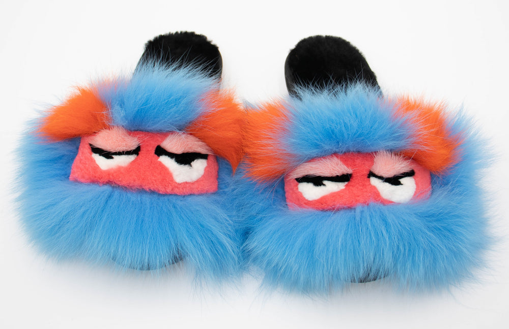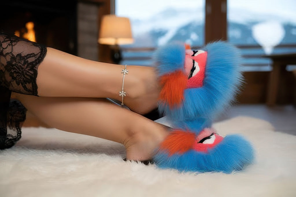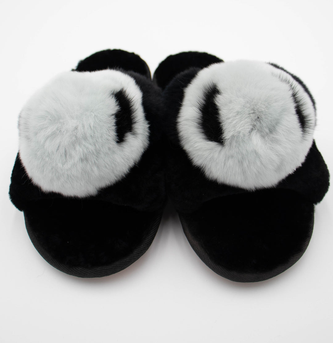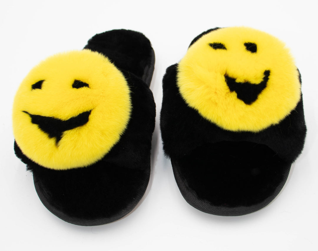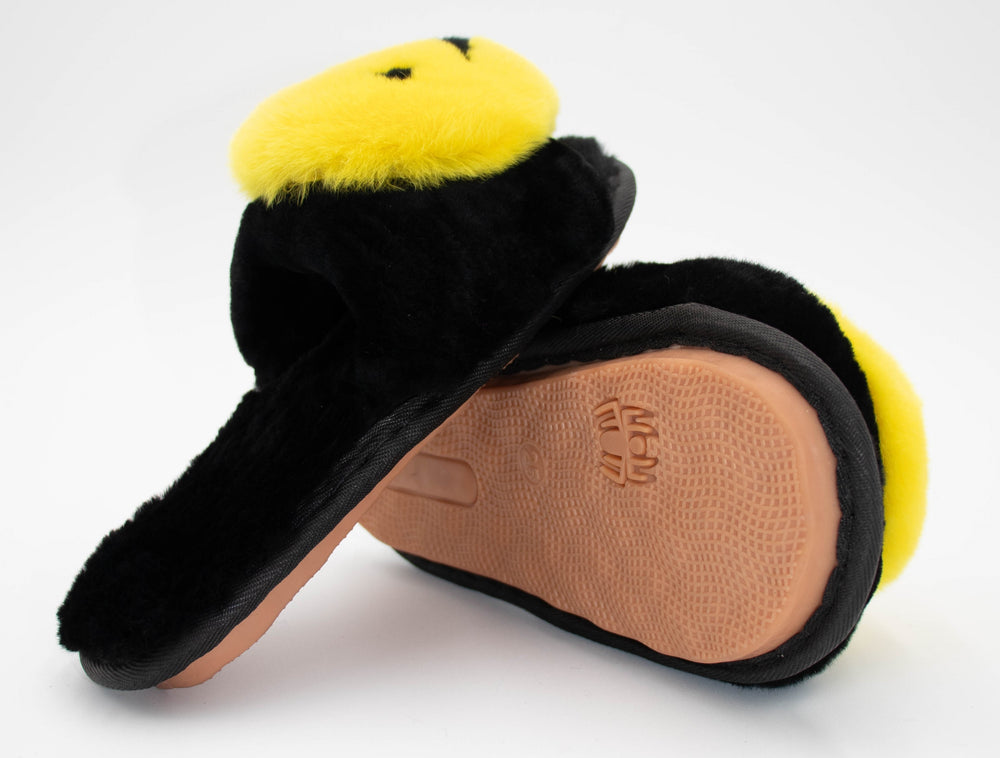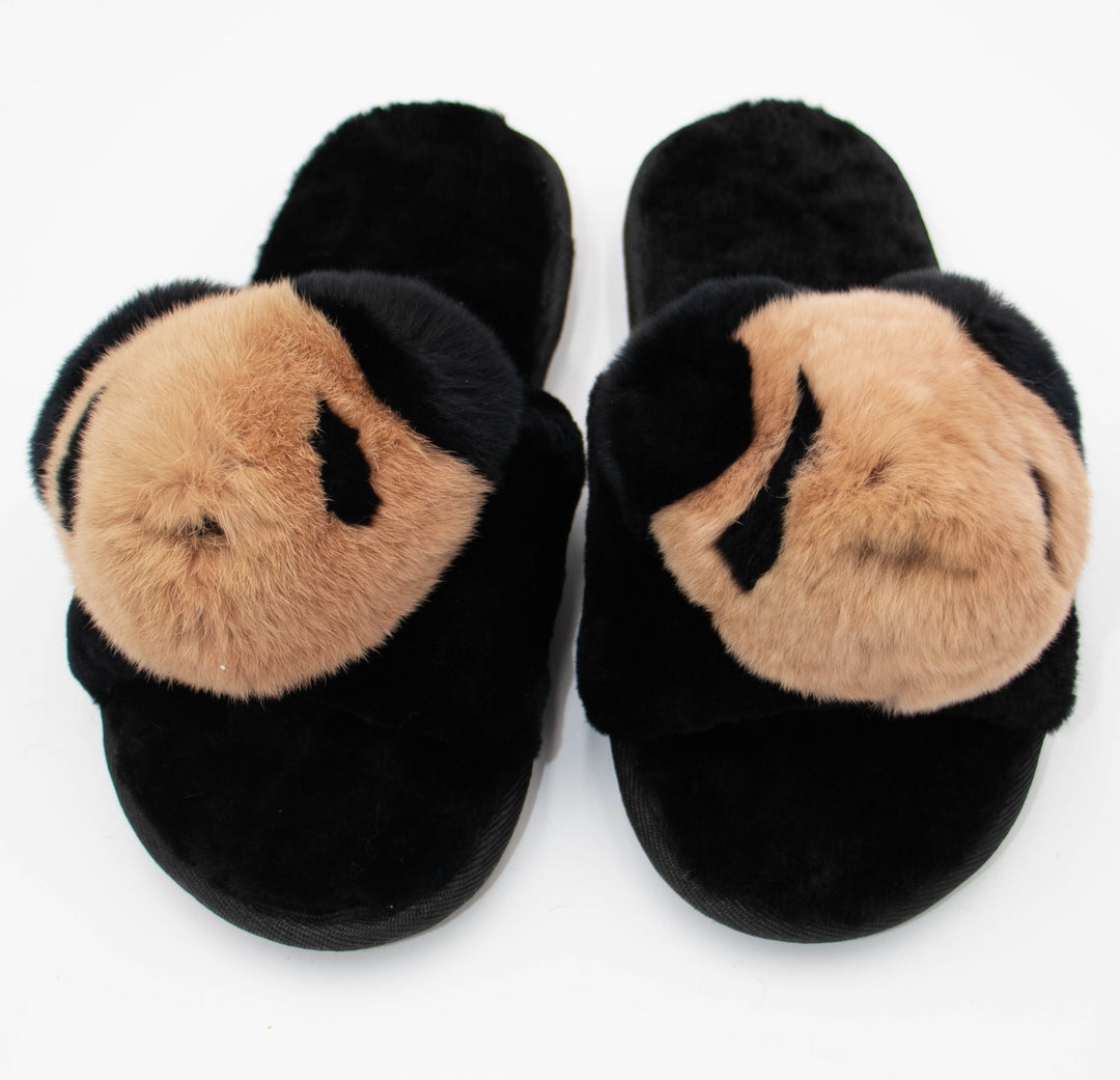 Sheepskin Sandal With Mink Smiley Face Slippers