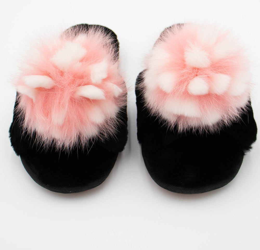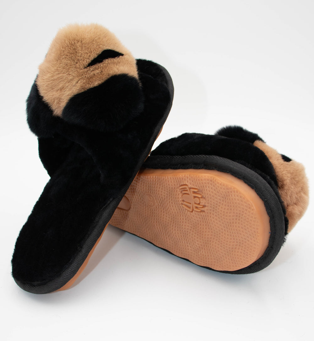Sheepskin With Hand Crafted Mink Dog Face Sandal Slippers