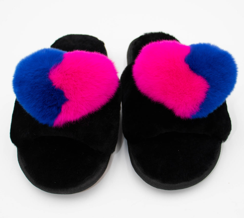 Sheepskin Sandal With Rex Rabbit Trim Heart Slippers