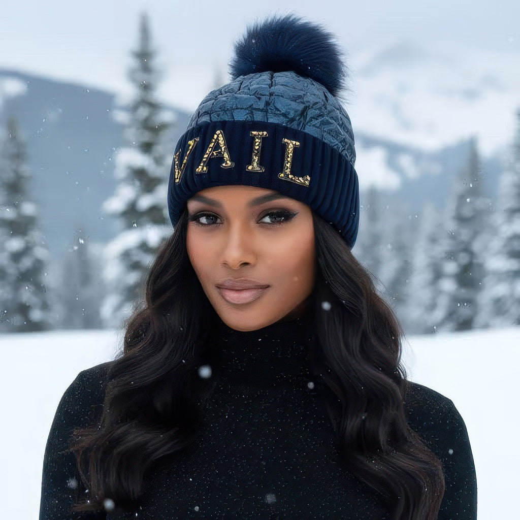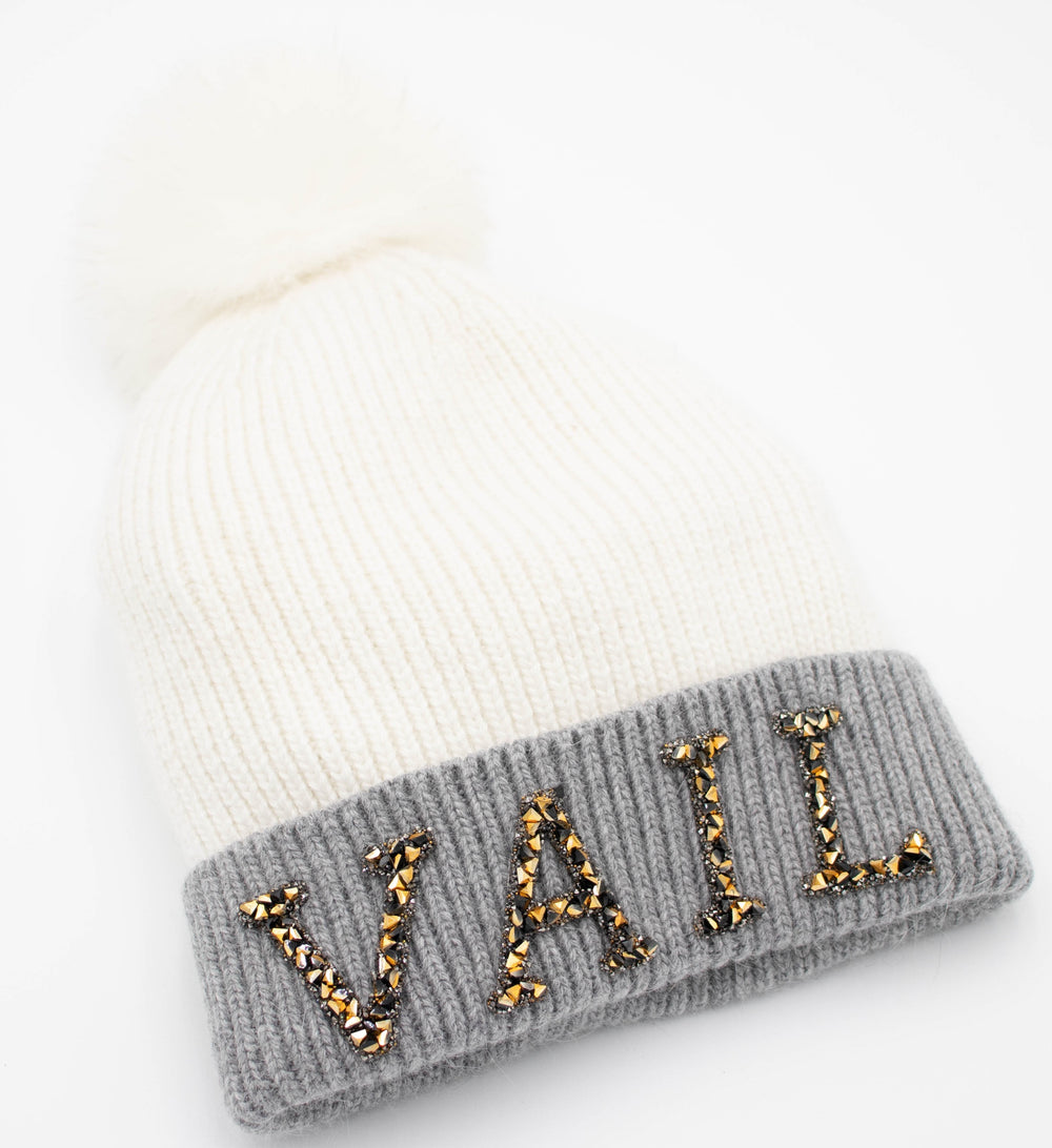 Crystal Vail Knit Beanie With Fox Pom