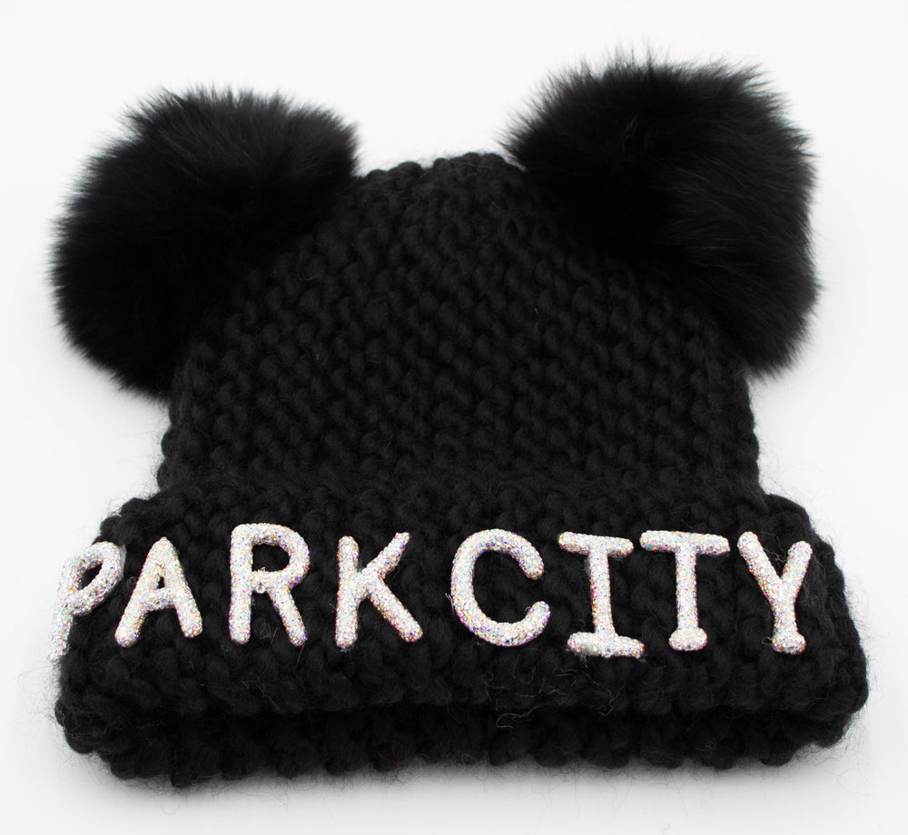 Crystal Park City Knit Beanie With Double Fox Poms