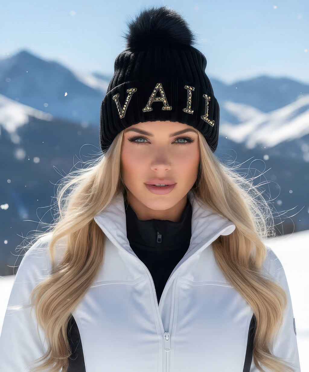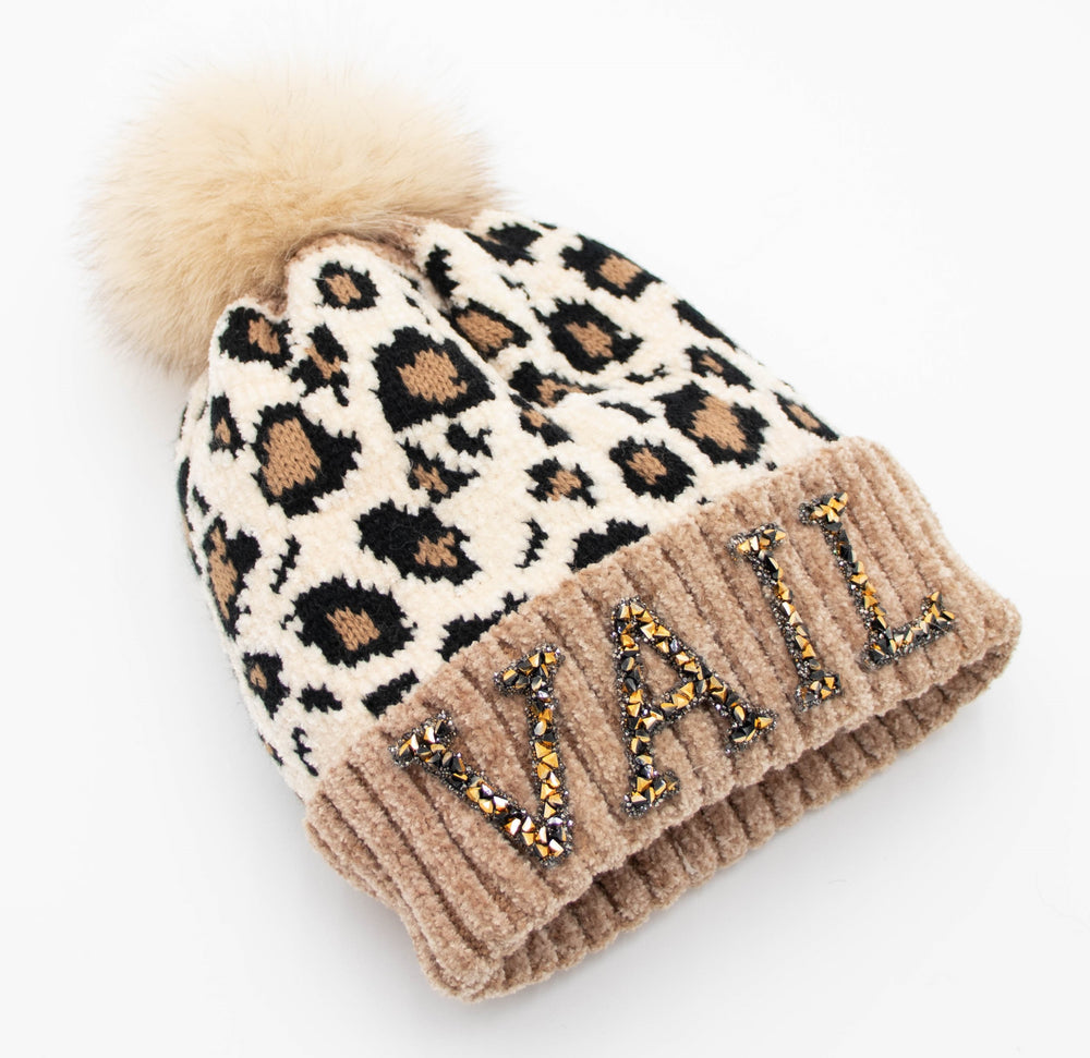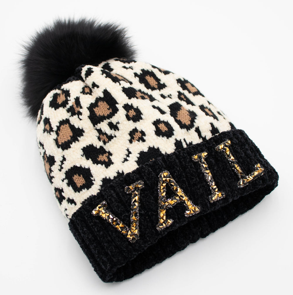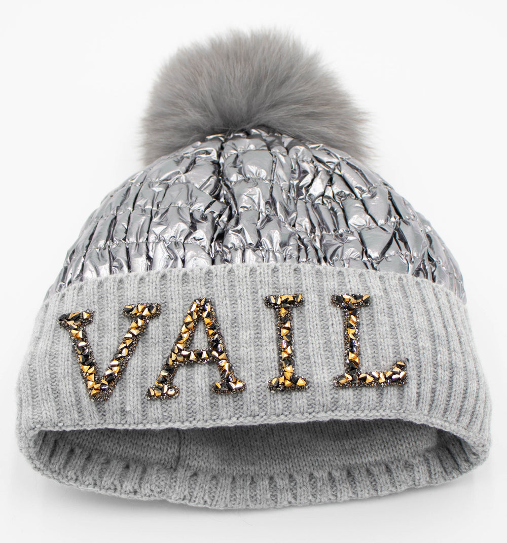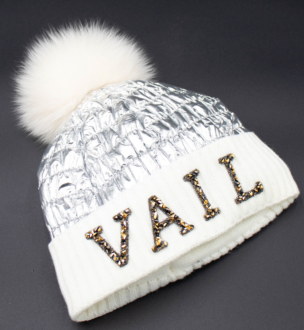 Crystal Vail Knit Beanie With Fox Pom