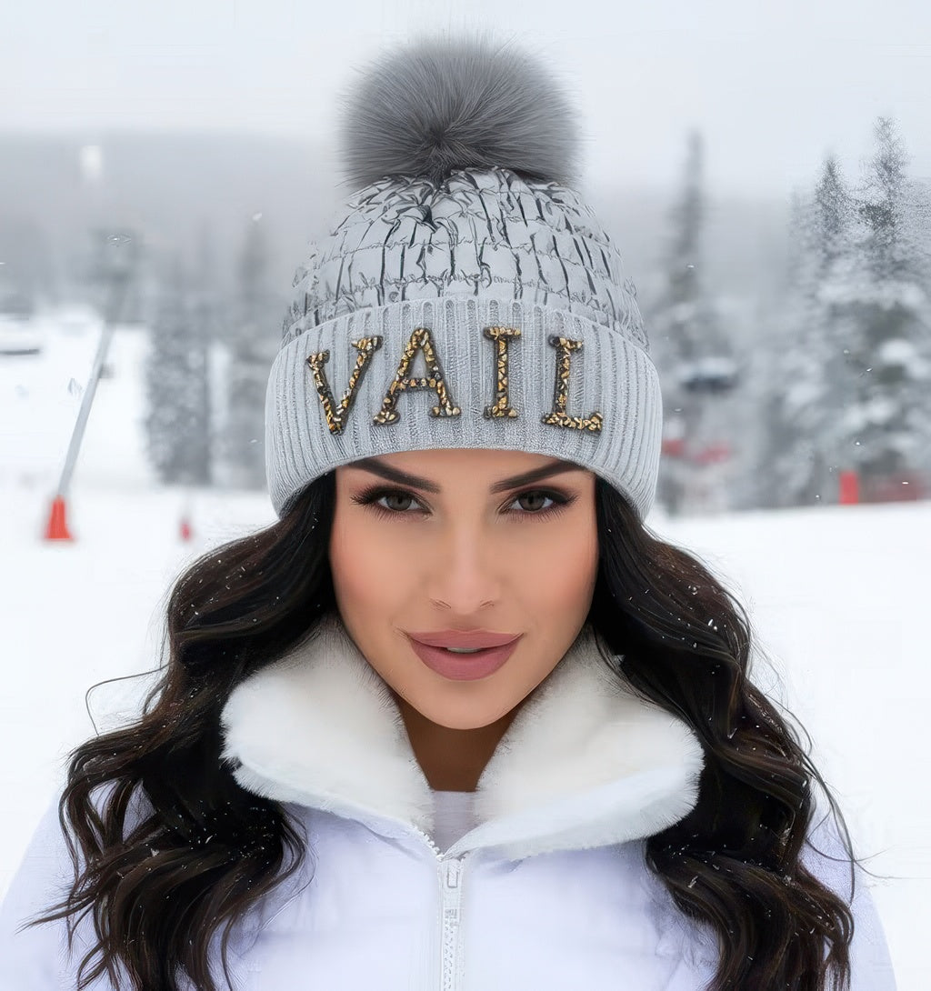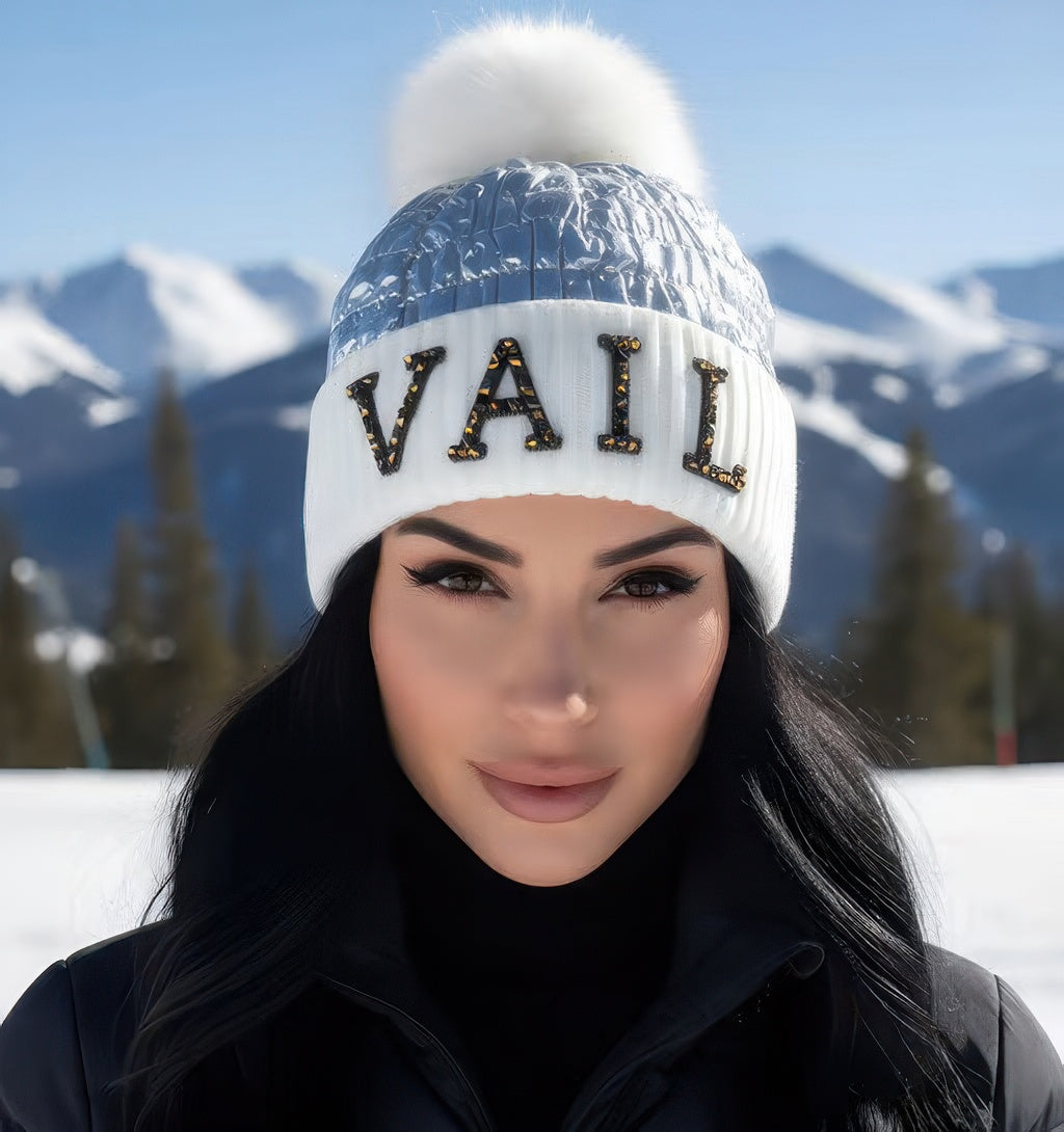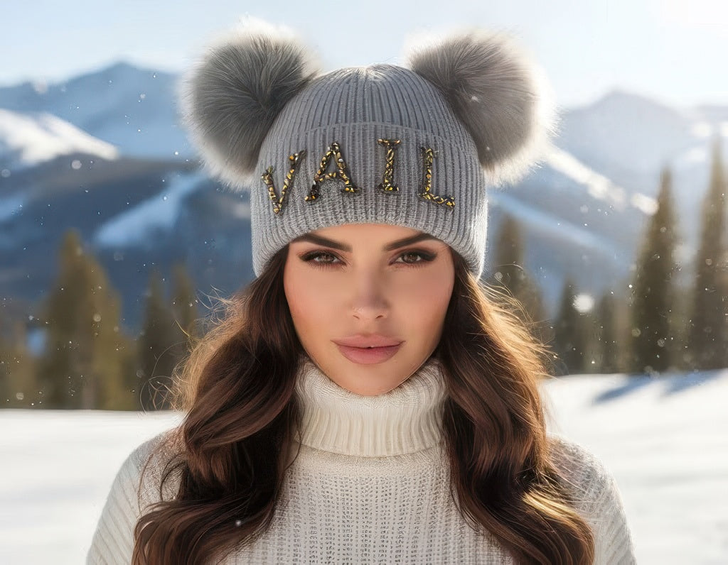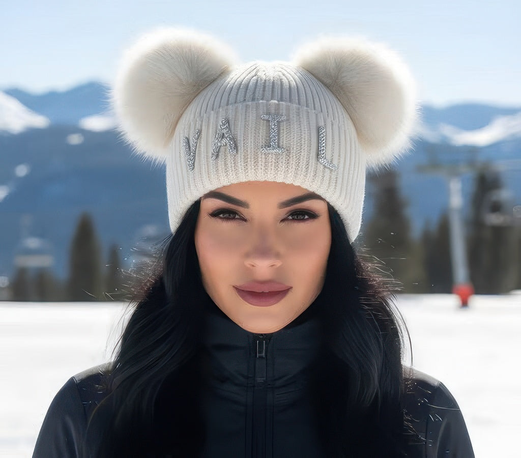 Crystal Vail Knit Beanie With Double Poms