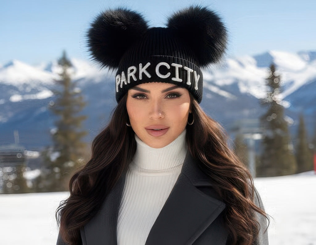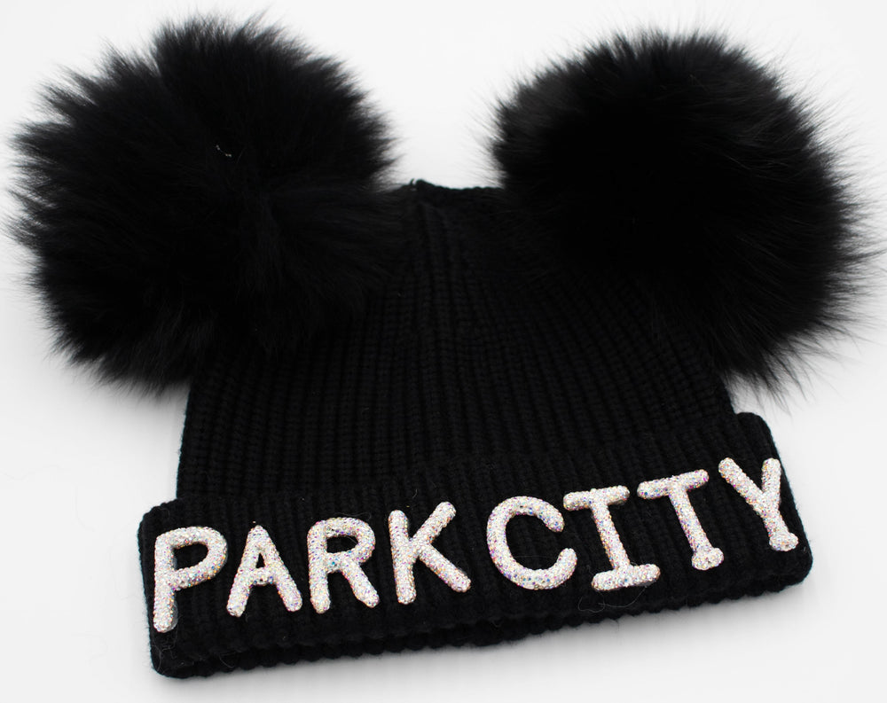 Crystal Park City Knit Beanie With Double Fox Poms