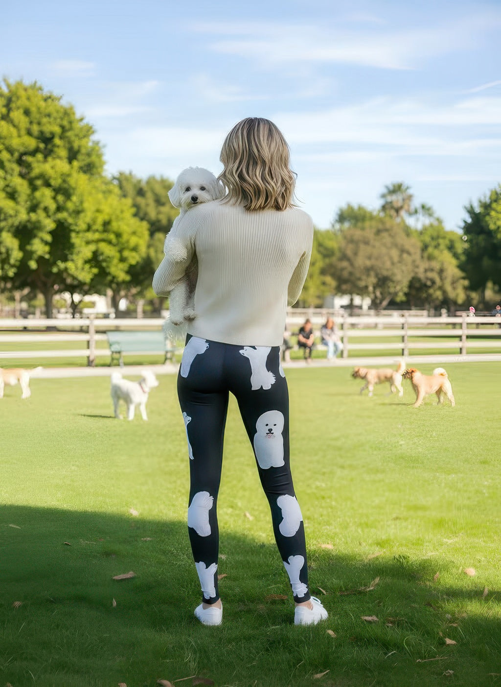 A perennially chic black-and-white palette enhances our Bichon Frise-print technical gear leggings, finished with a compression design for a consistently sleek, flattering fit.