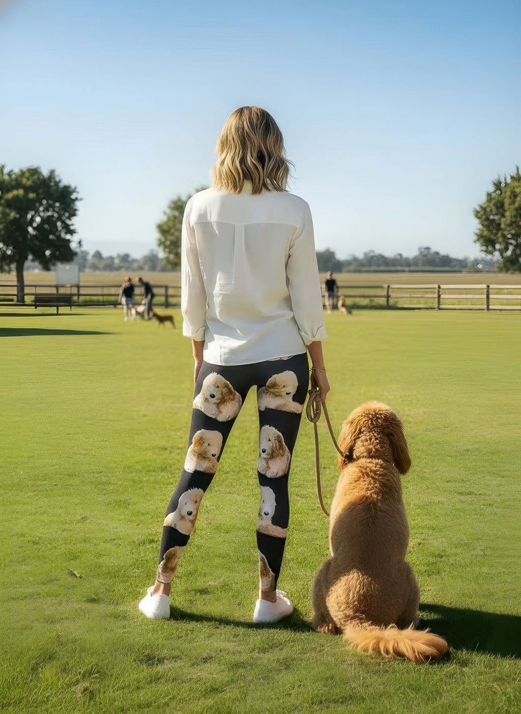 Compression creates a sleek finish on our versatile leggings, designed in flexible fabric for optimum comfort. A Goldendoodle dog print adds an adorable finishing touch.
