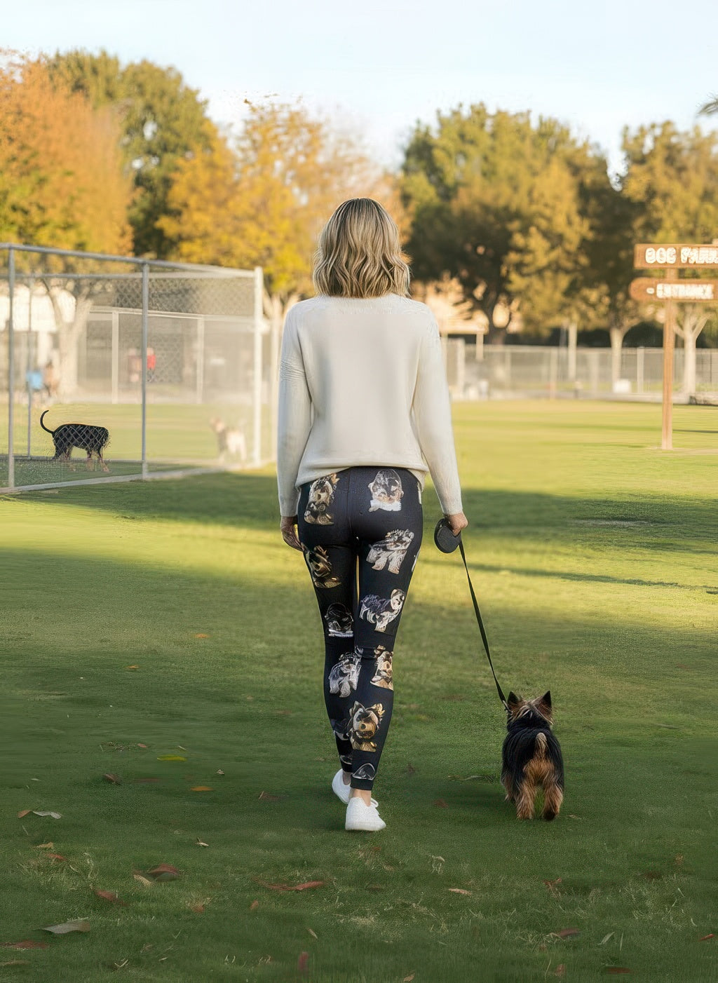 Perfect for relaxing on the couch with your four-legged best friend! A Yorkshire Terrier puppy print makes a precious style statement on these stretchy technical gear leggings.